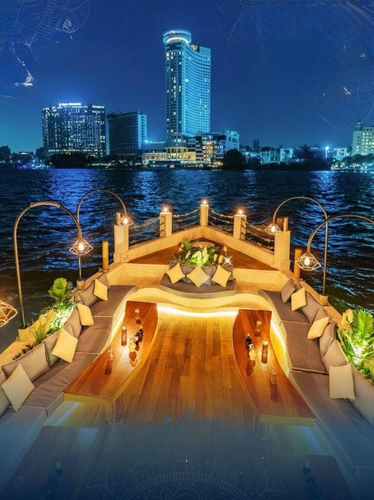 Step aboard your private luxury Dahabiya and immerse yourself in an unforgettable Nile experience—where timeless elegance meets modern comfort. Enjoy a serene evening sailing the world’s longest river, surrounded by soft breezes, golden sunsets, and the magical lights of Cairo.